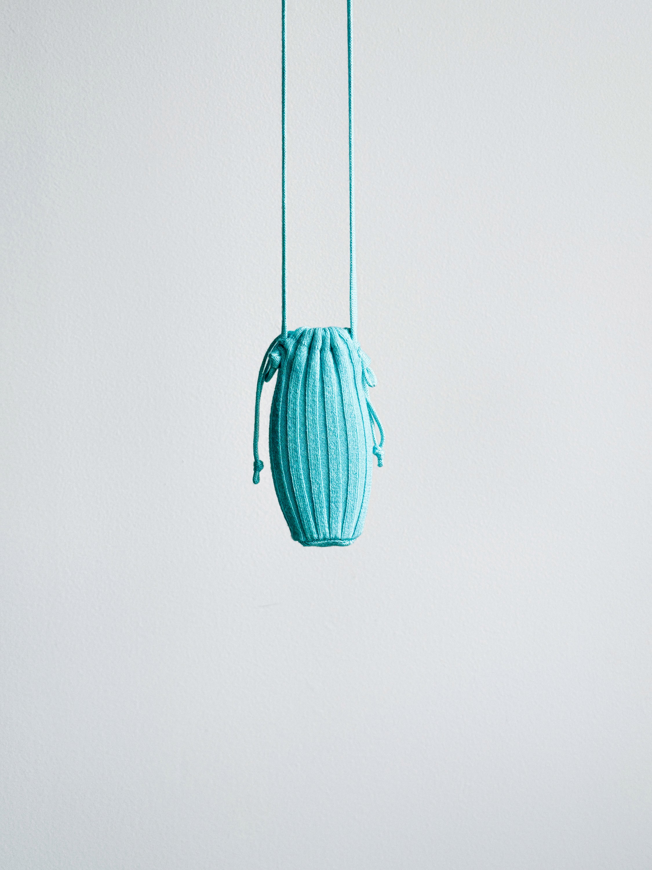 ブランドのコアが近いこともあり、コラボレーションプロダクトの仕様は想定よりもスムーズに決まりました。GIU GIUの既存のラインナップであるNONNNA pochetteをリスペクトし、kyu cameraがすっぽり収まるポシェットを作りました。 kyu cameraのアルミの冷たい質感をリブニットの温かみが包み込みます。